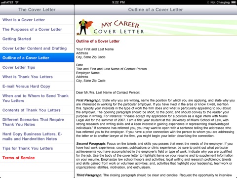 This just contains tips on how to write a Cover Letter. This is some really good information however the same information can be found by simply typing "cover letter" into a google search. You are not able to make a cover letter within this app. It appears as though the owner of this app just did a search of this topic and put it into an app to rip people off. Dont waste your money on this app.