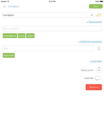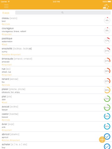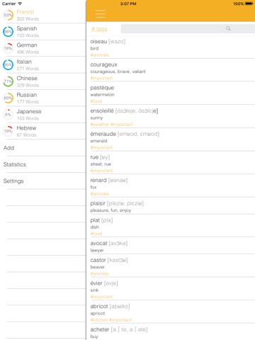 • Completely learned words can be hidden or deleted from the main list of study;
