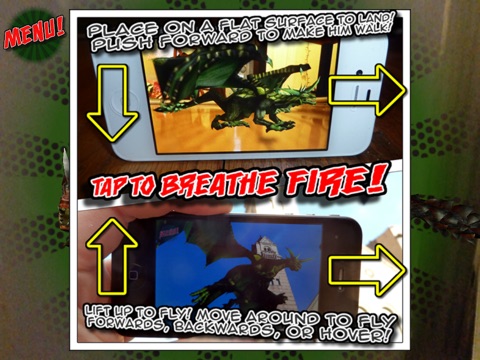 TURN YOUR iDEVICE INTO A REAL 3D DRAGON!! Lift it to fly, put down to land, push to walk!! It responds to your movements! And tap to breathe fire!!
