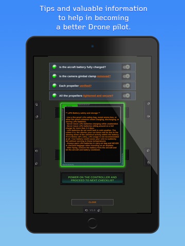 Youre looking for a simple to use and intuitive application to help you remember the crucial preparation steps for getting your Drone ready?