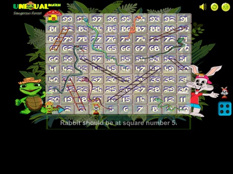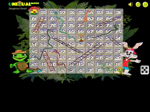 This snake and ladder game has two characters: turtle and rabbit! The rules are same as other similar games, but there are two modes. In Paper mode, everything is similar to how you play this game on a board. You decide the order in which characters take turn, roll the dice, and then move your character according to dice’s number. But in Normal mode, the game shows you which character’s turn is and you have to move that character. If you move it to wrong tile or other similar errors, it will show you a message and tells you where that character should be. Also it will automatically move up from ladders or goes down when stepped on a snake.