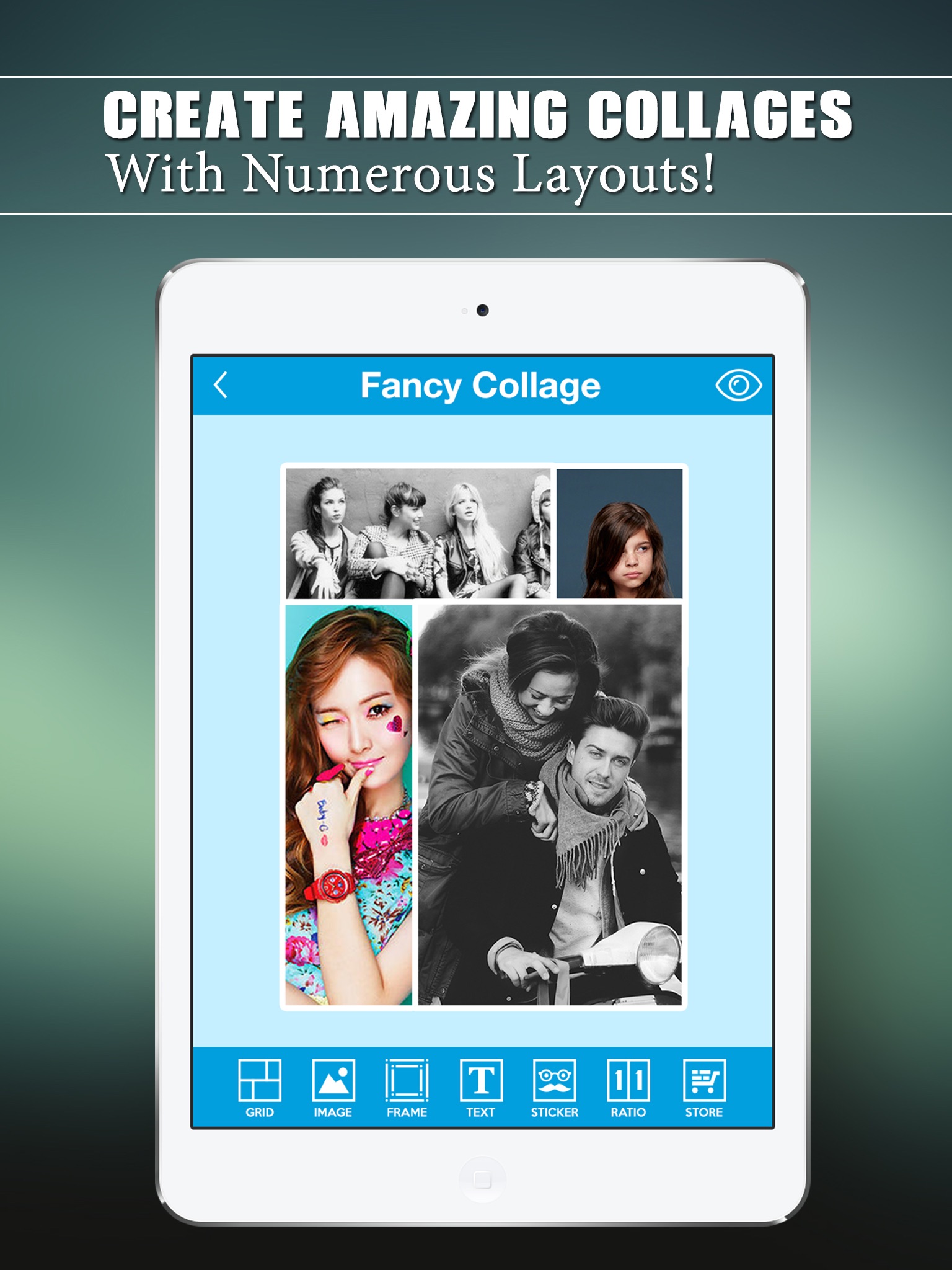 My Fancy Collage Creator have the best collage making options which are numerous grid layouts, best photo editor, amazing backgrounds, awesome frames, text editing options, funny stickers and many more.
