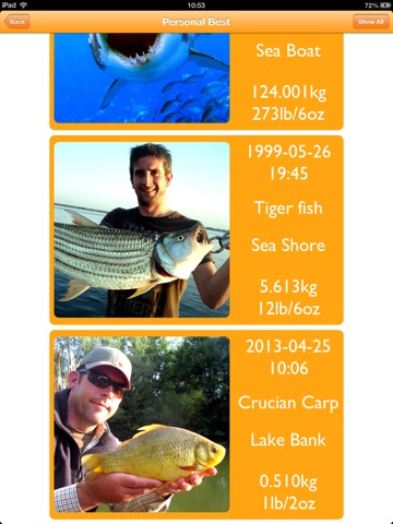Personal Best Showcase feature which tells you your biggest catch for each & every species across all disciplines & then Tweet this info at the touch of a button via Twitter.