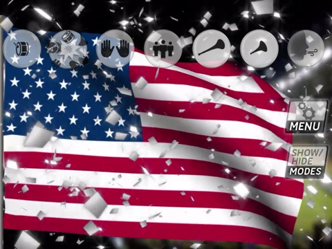✓ Sports Ribbons Mode (animated American flag in a stadium with sports ribbons flying around it).