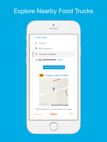 * Find where the closest open Food Trucks are to your current location.