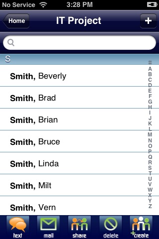 The creators of My Groups have felt your pain. Now you can divide your contacts into custom designed groups, making them much easier to find, and send out mass e-mails and mass text messages. My Groups even gives you features for sharing and exporting. And you dont need a degree in engineering to figure it out.