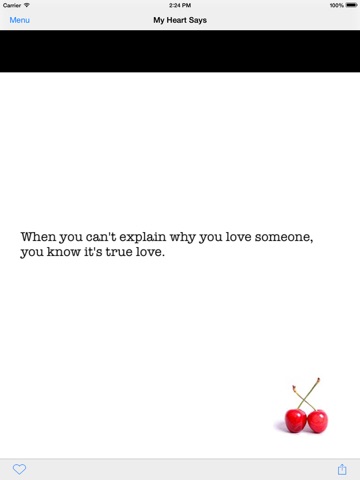 Share the quotes you like with your friends or loved one through email, twitter or facebook. If your heart was touched by love and you are ready to share it please suggest us a thought. We will considerate it, update the app quickly, and distribute it either anonymously or naming you (your choice).