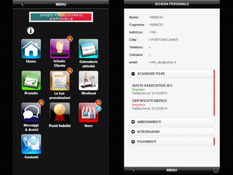LAPP ideale per gli iscritti, il personale ed il management di un moderno centro fitness. Gli iscritti possono verificare il proprio abbonamento, le scadenze, il certificato medico ed i pagamenti, prenotare i corsi ed i servizi, acquistare abbonamenti e prodotti, verificare il piano di allenamento ed interagire con lo staff del centro visualizzando messaggi e comunicazioni riservate inviate dal proprio consulente commerciale ed istruttore. Il personale del centro, può verificare la propria agenda ed inserire appuntamenti, pianificare le attività di CRM e registrare le presenze degli iscritti alle lezioni e servizi erogati. Il Club manager può effettuare verifiche sull’andamento del Club e monitorare il lavoro del personale.