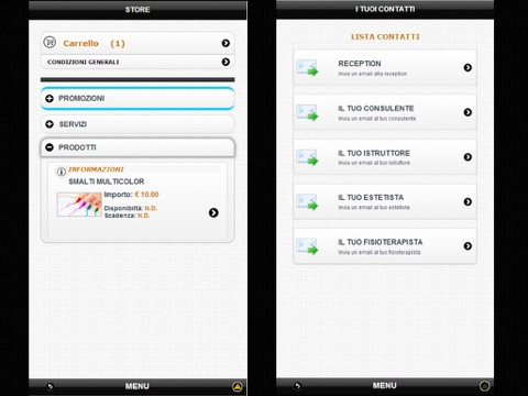 Gli iscritti possono verificare il proprio abbonamento, le scadenze, il certificato medico ed i pagamenti, prenotare i corsi ed i servizi, acquistare abbonamenti e prodotti, verificare il piano di allenamento ed interagire con lo staff del centro visualizzando messaggi e comunicazioni riservate inviate dal proprio consulente commerciale ed istruttore.