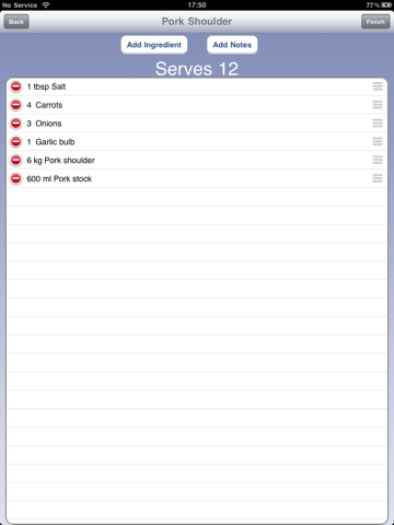 A list of ingredients for your favourite recipes for quick reference in a grocery store/supermarket.