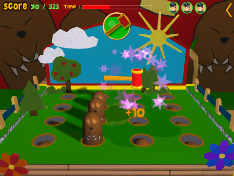 In this game your child uses a mallet to tap moles arising of a hole. The goal is to make as many points in a short time. When a level is successful image of an animal farm becomes available in the image gallery.