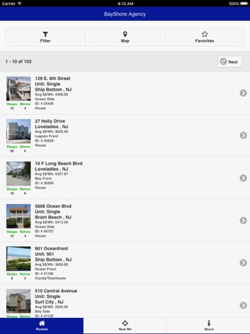 With this app you can view all aspects of vacation properties to rent in the Southern Ocean County area, including: