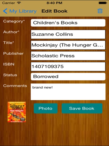 My Library is for book lovers to manage your book collection. Simply scan the barcode, the app will retrieve book information and store it in your IPhone. Alternatively, you can enter the book information manually and capture the book cover photo as well.