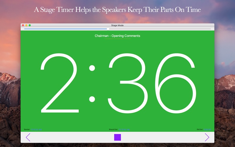 There are two editions of this app: Basic and Premium. The basic edition is free of charge and includes the timer and the stage mode. The premium edition is a subscription and unlocks the scheduling capabilities, cloud syncing and permanent records of times for the meetings and for each individual speaker. Automatic cloud syncing keeps your app up to date across all of your devices, including devices running the iOS version of the app! The premium edition also includes more advanced features for the timer, such as remote controling and monitoring it from an iOS device, and when the meeting is going overtime, an indicator shows how many minutes the meeting is falling behind schedule. Also included with the premium subscription is the ability to keep track of each speakers statistics, in order to assist with scheduling future assignments. To upgrade to the Premium Edition, click "License" in the menu bar. See Subscription Details Below.