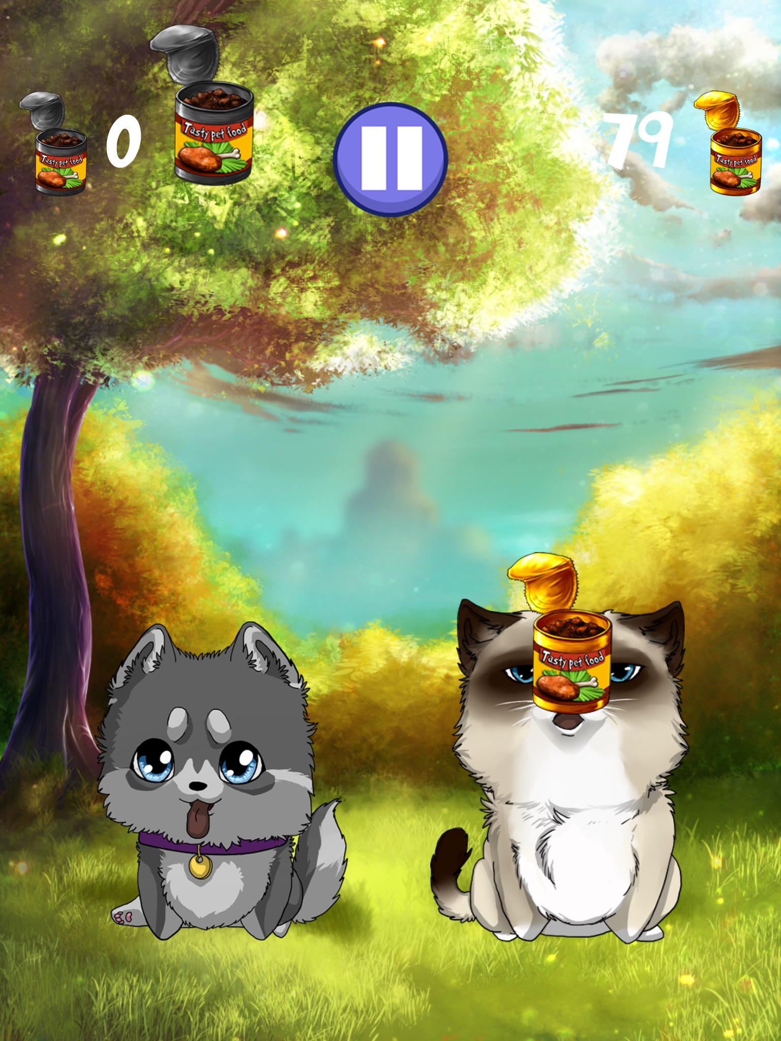 Tap and hold to open the mouths of your pets to feed them with endless waves of food. The more food you eat, the higher your score. Beat your friends on Game Center or share your score on social network. But, watch out! You have to stay focused to avoid the veggies.