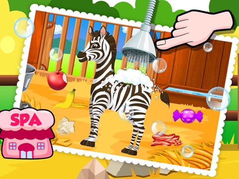 Your pet day care spa is filled with fun activities for you and your baby zebra to do. Start by giving the animal a bath, scrubbing clean all that dirt and dust pets get when they run around outside. Next, choose a fun hairstyle and brush the animals hair until it shines in the sun. Clean hair and a brushed mane start the makeover just fine, but to complete the kids game, you need to pick out an outfit, too!