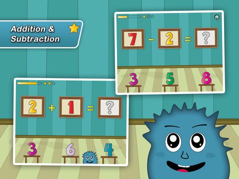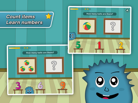“My Math Room” is an early learning app that teaches kids about numbers and helps them build up basic mathematical skills. Playing various levels, children are introduced to numbers, counting and mathematical operations, such as addition and subtraction. They can practice counting and learn to find the missing number in a given sequence.