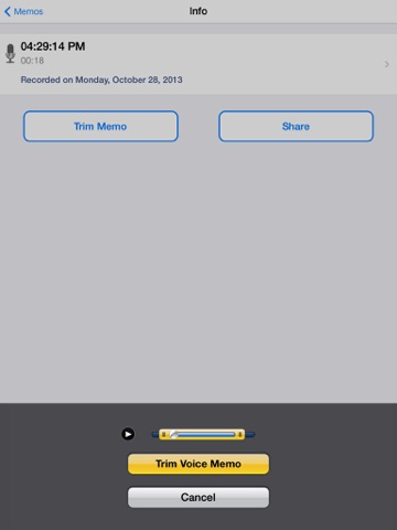I JUST downloaded this application on my iPad and immiditally found 2 problems with it. #1. After you record something and want to play it back, on the bottom left it starts at 0:00 and on the far right shows the end point. While it is playing the far left number should be counting up!! I just recorded a long voicemail message from my iPhone and at around 1 min 40 seconds it gives me the information I need. It would be simple to skip ahead to that point in time on the left, but you can not. You instead have to figure out how long the entire recording is and then subtract that time into the message, however I add to the recording. #2. When you are playing back a recording the far right time is counting down. When it gets to say five minutes and 10 seconds: 5:10 the next number counting down should be five minutes and 9 seconds 5:09 NOT "5:9". There is NO SUCH THING as 5:9 !! Please fix these 2 problems ASAP! Im shocked these problems made their way onto iTunes to be honest.