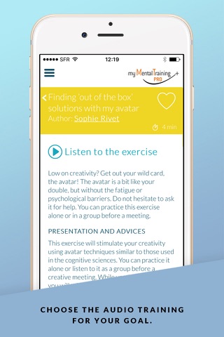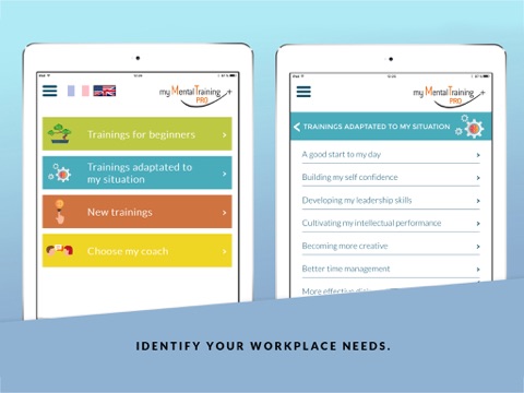 My Mental Energy Pro helps you to make better use of your cognitive and emotional resources in order to meet the increasing requirements of today’s work world, while protecting yourself. Let go of the pressure, manage your time in a more efficient way, boost your creativity before a meeting, be more self confident in order to prepare a difficult interview, train your memory, be a better communicator… Every advise or exercise answers a situation that you meet in your professional life and helps you to be ready for it.