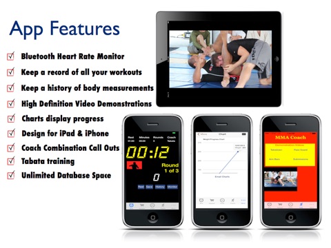 My MMA Coach HD is your personal trainer during your heavy bag workouts. This app’s coaching features will improve your skills, coordination, strength and endurance. Track all of your workouts, body measurements and vitals. Graphical interface is interactive. Touch the line chart and drill down to the detailed data. Email this information for further analysis and back up.