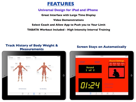 ..........• 30/30 Routine – Calls out various workouts every 30 seconds.