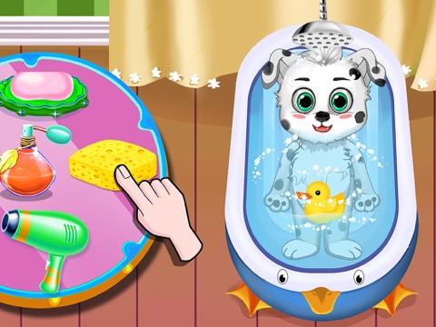 The mommy dog has just had some new puppies, and she needs you rhelp to take care of them. Wash and clean the little animals in the bath, scrubbing their furry ears and wet noses with soap and water. Once theyre clean, give them some food to fill their tiny little tummies. Carry them through the house to your dress up room and put some cute outfits on the dogs. Nothing like fun puppy dresses and booties to make them feel loved!