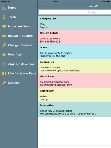 • Lock Notes with PIN / Biometric authentication (Fingerprint / Face detection)