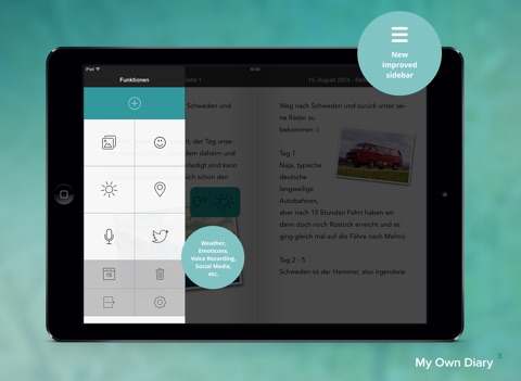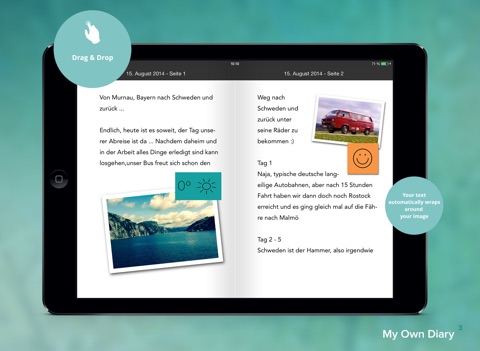Die Idee der App ist super. Aber die Texte werden abgehackt und nicht richtig gezeigt. Mein schreibt einen Tagebucheintrag und es wird nur der Text auf der linken Seite gezeigt. Danach verschwindet der Text einfach. Es ist sehr schade, aber das Programm taugt wirklich NICHTS!!!!
