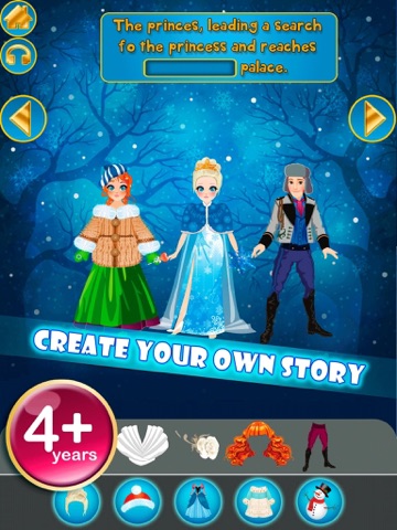 Create your own story! Enchanting Beautiful Snow Land Princess Dress Up FASHION AND MAKEOVER story Game FOR GIRLS and BOYS!