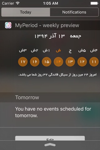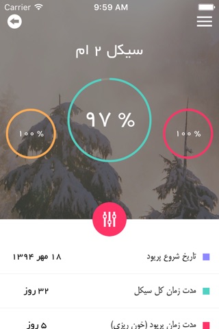 ۵- دارای تقویم فارسی - شمسی به صورت هفتگی و ماهیانه برای نمایش سیکل های قائدگی