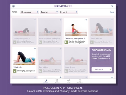 The RESULTS section records your activities and allows you to see which exercises and sessions youve completed and what theyve focussed on. This is a useful tool for enabling you to balance your workouts and achieve a good all-round exercise regime.