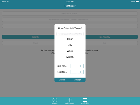 Setup everything from single dose pills, weekly taken pills or irregular patterns.