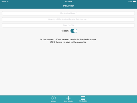 When you add a medication to the app it’ll save to your calendar and set an alarm to make sure you never miss any again!