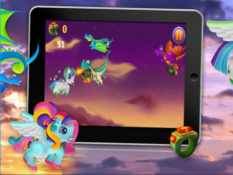 - Slide your thumb or a finger on your pony at the left of the screen to fly forward, back, up and down to avoid dragons.