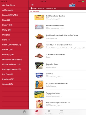 Browse sale items and weekly specials with ease, and add them to your personalized shopping list. All products are found in their specific categories.