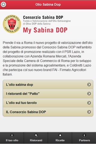 Progetto promozionale finanziato dalla Regione Lazio per rinnovare e promuovere lo storico legame fra lOlio della Sabina e la Ristorazione di qualità, un binomio che da sempre è sinonimo di gusto e profondo legame col territorio.