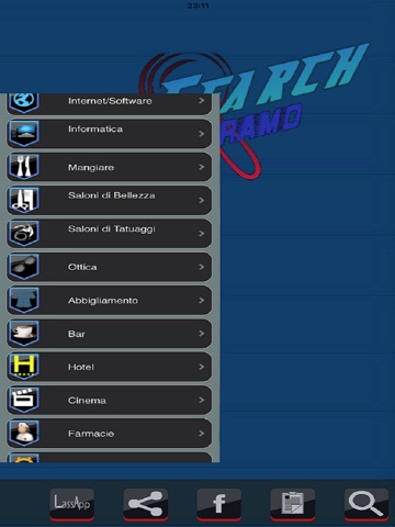 "My Search Santeramo" E un motore di ricerca, ci sono diverse categorie (bar, hotel, negozi di abbigliamento, ottica, salone di bellezza e tutte le altre categorie di attività), lutente seleziona la categoria desiderata per esempio : pizzeria e nellapp saranno visualizzate tutte le pizzerie di Santeramo che avranno aderito a questa iniziativa (ovviamente questo discorso vale per tutte le altre categorie di attività).