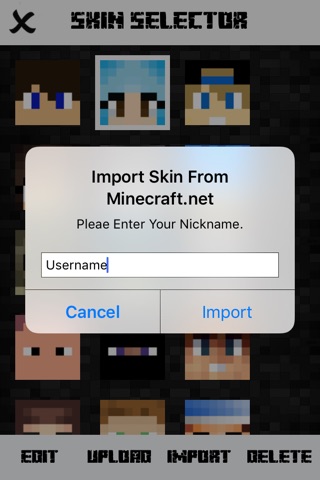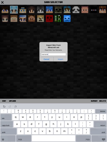 My Skin Editor For Minecraft App is really simple to use. You can start with modifying the default skin thats included in the App. You have the option to get or import (or steal) skins from Minecraft.net & modify it on your own & use it. To import skins from Minecraft.net, you just need to enter the nickname of the player & the skin will be available in the App.