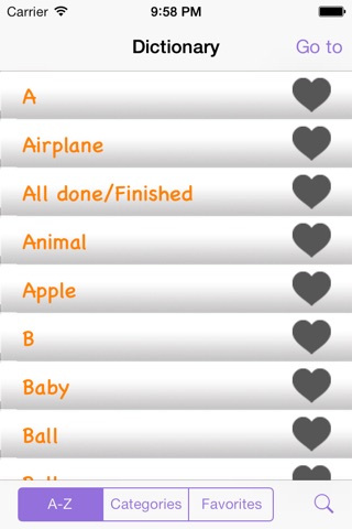 * Keep track of the signs you want to work on in your favorites list