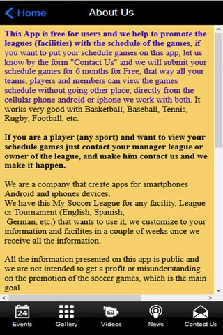 7.- My League.- The idea is to show the players the rules of this game "Soccer" the policy of the facilities and any information that will help new players understand the league and the rules of game.