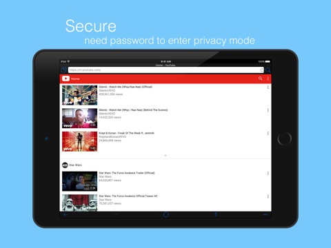 When you launch the app, you enter normal mode first, you can visit website in this mode, after you input the password in the address bar, you enter the private mode. In this mode, you can visit the website that dont want other people to know.