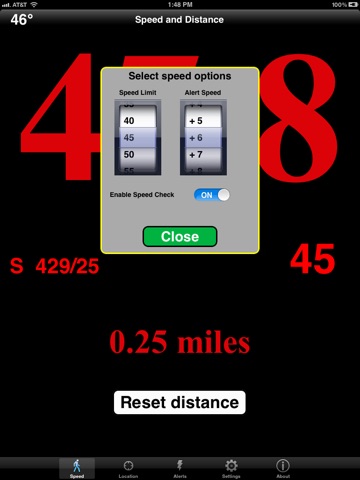 The option also exists to enter/select speed limits for streets and areas, have the app track your speed, and alert you either visually and/or audibly when your speed exceeds the limit.
