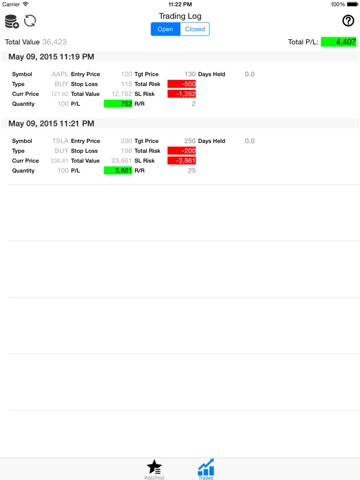 b) Ability to track individual lots of the same stock in a trade and calculate its risk/reward