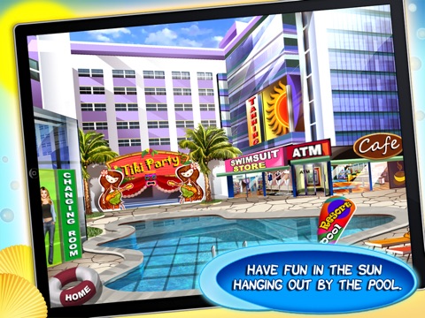 Flirt with cute boys by the pool and get invited on dates! Go to a tiki party and dance in the hula hoop competition! If you win enough competitions you could become the Summer Queen!