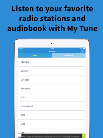 Listen to your favorite radio stations and audiobook with My Tune - Live Radio & Audio Book for FREE. With over 50,000 radio stations and 10.000 Audio Book, My Tune has the largest selection of radio station and audio book from around the world.