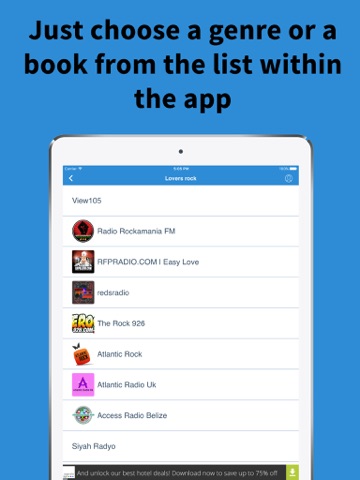 Just choose a genre or a book from the list within the app and listen to with 3G or wifi connection, shows on your iphone or iPad. We are working super hard to bring this application to you. Its 100% free.