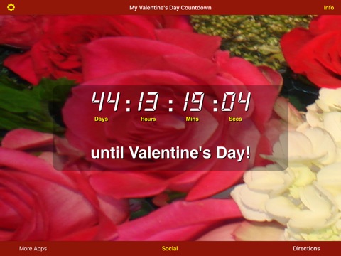 Make the lead-up to Valentines Day as memorable as the day itself. Download My Valentines Day Countdown now and start your personal, heartwarming countdown to love!