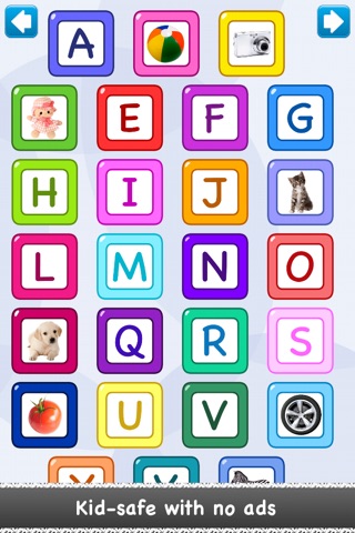 * Customizable pages for each letter of the alphabet where you can select any of the preloaded images, or use photos from your iPad or iPhone.