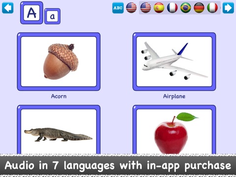 Choose from preloaded images with corresponding English words, or create your own pictures and words such as "M is for Mommy" and "G is for Grandma". Kids will love hearing the sound of familiar voices, seeing a photo of recognizable faces or objects, as they start to learn and associate the letters of the alphabet with the words they already know and use every day.