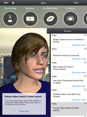 Nika is your New Virtual Assistant!. She will read you the events stored in your iPhone/iPad Calendar, and the weather forecast at any location in the world! She can also offer you the daily News of your favorite topics and read your horoscope with a fancy, nice interface, and even more!